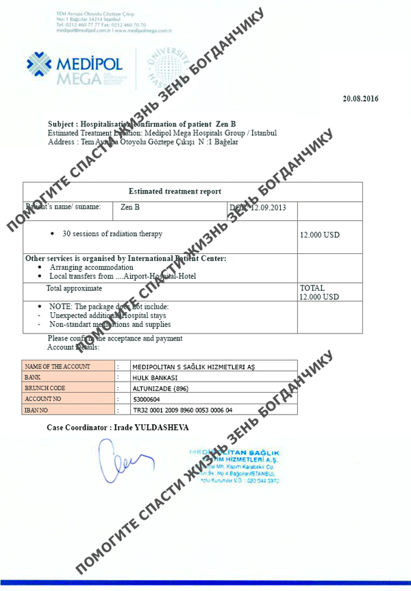 Нам откликнулись из Турции, г.Стамбул, доктор Kazım Karabekir, клиника Medipol Mega. Это очень большая сумма для нас, но с Вашей помощью мы спасем ребенка!!!